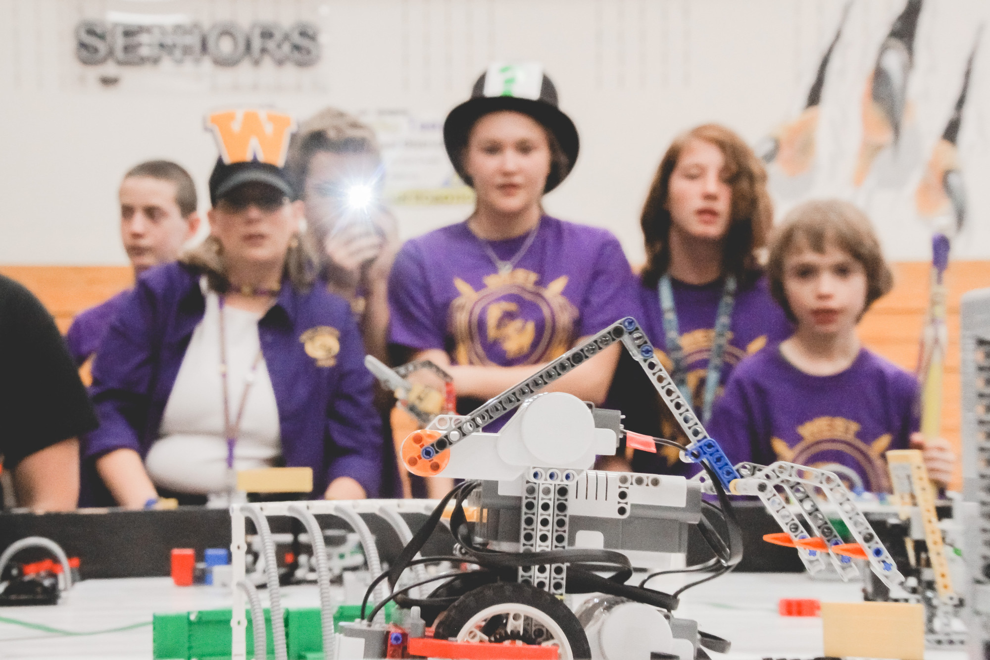 I’ve tried this shot a million times in the last 7 years, and this is the first out of nearly 100,000 FLL photos I’ve taken in the last decade that perfectly captured an entire fascinated team (lined up by height, even!) with their robot front and center in such a nice, clean way. I love this shot.