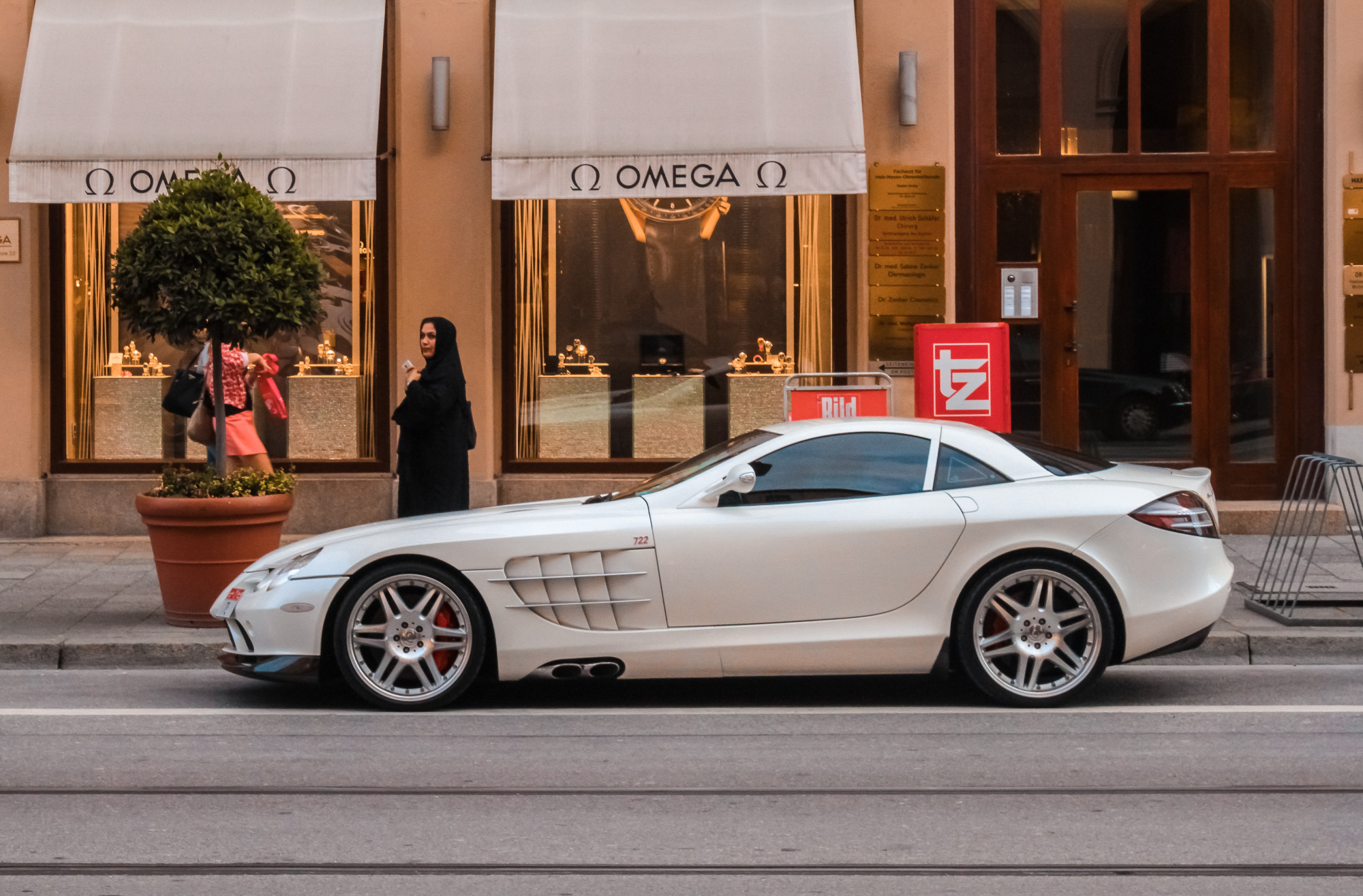 I really like this picture. The whole situation is just fascinating, and the car is gorgeous. It’s a Mercedes with a McLaren engine.