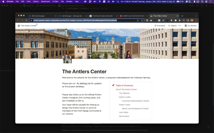 Anyway, this year’s post is going to be whatever length it is when I’m done writing, and I’m going to hit publish. It’s 7pm, Sunday, January 15th. Here’s the original Notion doc I wrote this in. I’m home in Rockrimmon in Colorado Springs, CO. Let’s get into it.